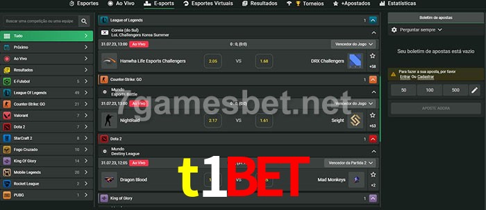 O t1bet oferece uma grande seleção de opções de apostas em e-sports com probabilidades competitivas